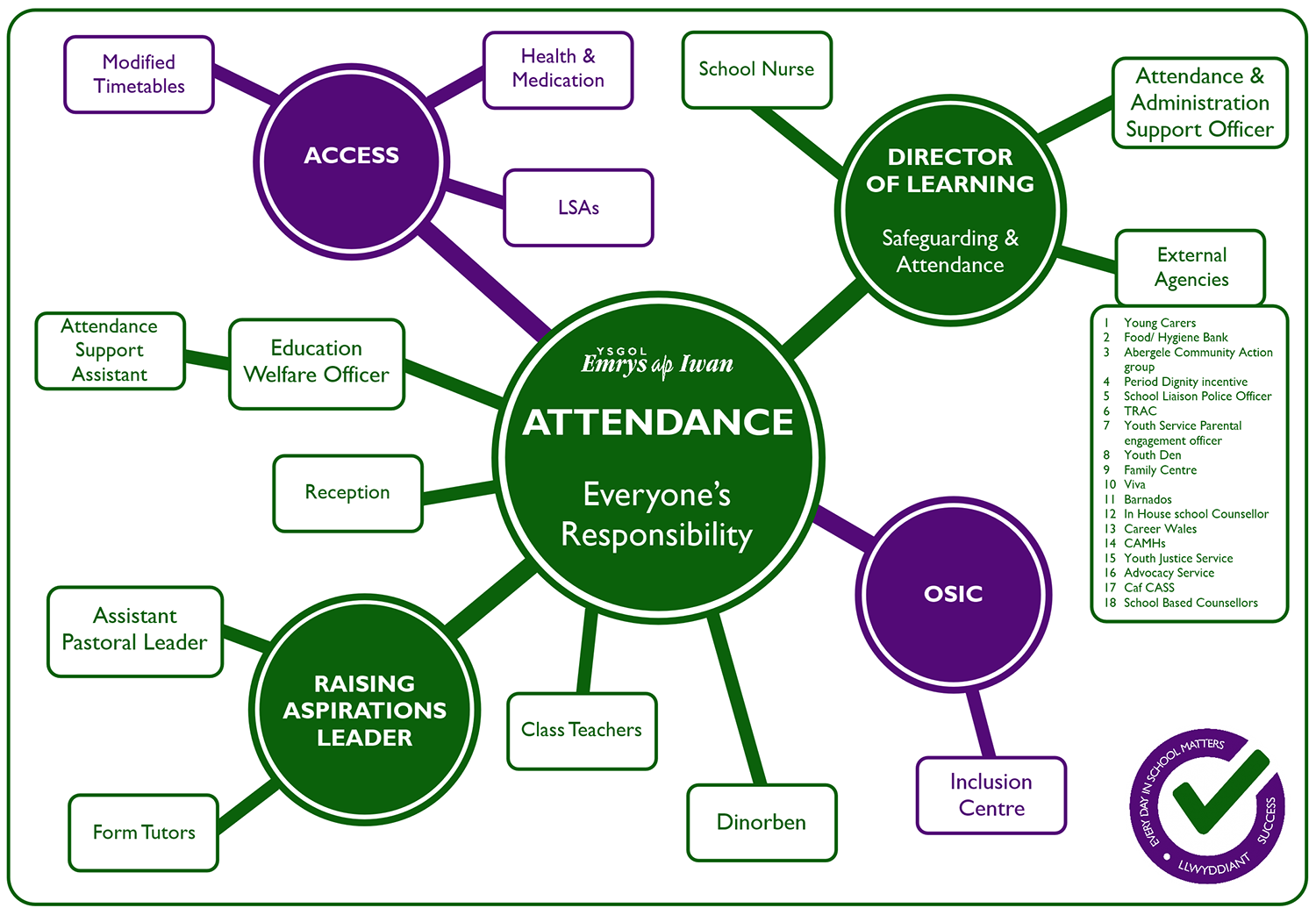 Maintaining the highest possible attendance for all students has always been important at Ysgol Emrys ap Iwan. Since the introduction of our rewards system, students are now rewarded for excellent attendance. Research has shown that attendance over 93% increases a students chances of achieving their targets.